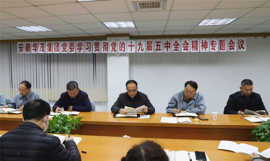 黨的十九屆五中全會是我們黨在全面建成小康社會勝利在望、全面建設社會主義現(xiàn)代化國家新征程即將開啟的重要歷史時刻召開的一次十分重要的會議,是在我國將進入新發(fā)展階段、實現(xiàn)中華民族偉大復興正處于關鍵時期召開的一次具有全局性、歷史性意義的會議,學習貫徹黨的十九屆五中全會精神,是當前和今后一個時期安徽華茂集團黨委的重要政治任務。11月27日,安徽華茂集團黨委召開學習 貫徹黨的十九屆五中全會精神專題會議。公司黨委委員以及各黨總支(直屬黨支部)、各單位、各部門主要負責同志參加了會議。