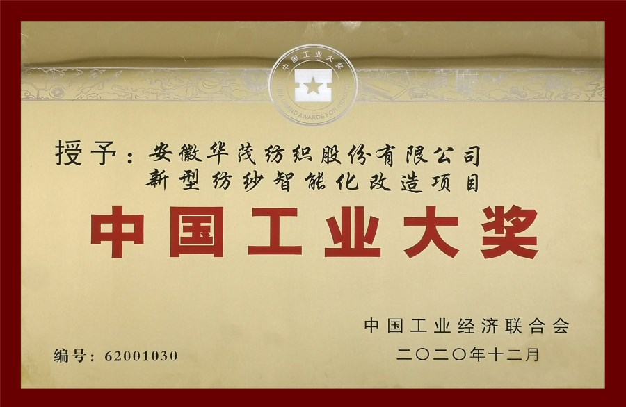 12月27日上午,從北京召開的第六屆中國(guó)工業(yè)大獎(jiǎng)發(fā)布會(huì)上傳來(lái)喜訊,由安徽華茂申報(bào)的新型紡紗智能化改造項(xiàng)目榮獲“中國(guó)工業(yè)大獎(jiǎng)”。中國(guó)工業(yè)大獎(jiǎng)是我國(guó)工業(yè)領(lǐng)域最高獎(jiǎng)項(xiàng),獎(jiǎng)項(xiàng)的獲得是對(duì)安徽華茂在以制造強(qiáng)國(guó)為己任、以產(chǎn)業(yè)報(bào)國(guó)為初心,堅(jiān)持自立自強(qiáng),走中國(guó)特色創(chuàng)新發(fā)展、綠色發(fā)展新型工業(yè)化道路等方面做出突出成績(jī)的充分肯定。