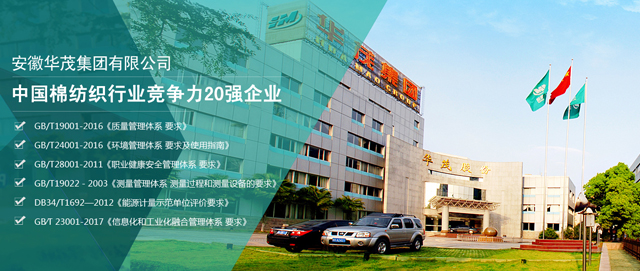 華茂現(xiàn)年產(chǎn)"乘風(fēng)"牌 Ne5-330 高檔紗線 10萬噸、"銀 波"牌 120-360 厘米幅寬高檔坯布面料 10000 余萬米。 紗線和坯布產(chǎn)品雙雙榮獲"中國名牌產(chǎn)品"、"全國用戶 滿意產(chǎn)品"和"安徽工業(yè)精品"等稱號。