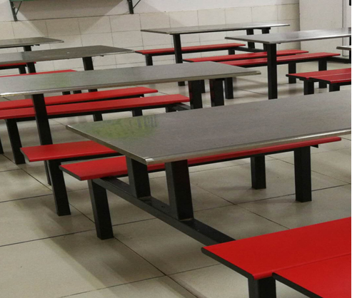 2、餐桌椅要求:四人座連體餐桌椅,不銹鋼桌面、防火板座椅(實(shí)物見(jiàn)照片)。